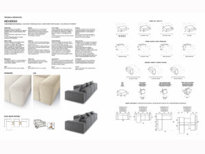 Reverso è pura libertà. La stessa di quando, da bambini, si giocava con i mattoncini delle costruzioni. L’idea di componibilità di Reverso parte da qui: il divano diventa ogni volta una creazione unica, personale, grazie a sedute, schienali e braccioli di tante dimensioni diverse, ai bordi lisci o pizzicati, alla scelta dei tessuti e dei cuscini più adatti al proprio sentire.